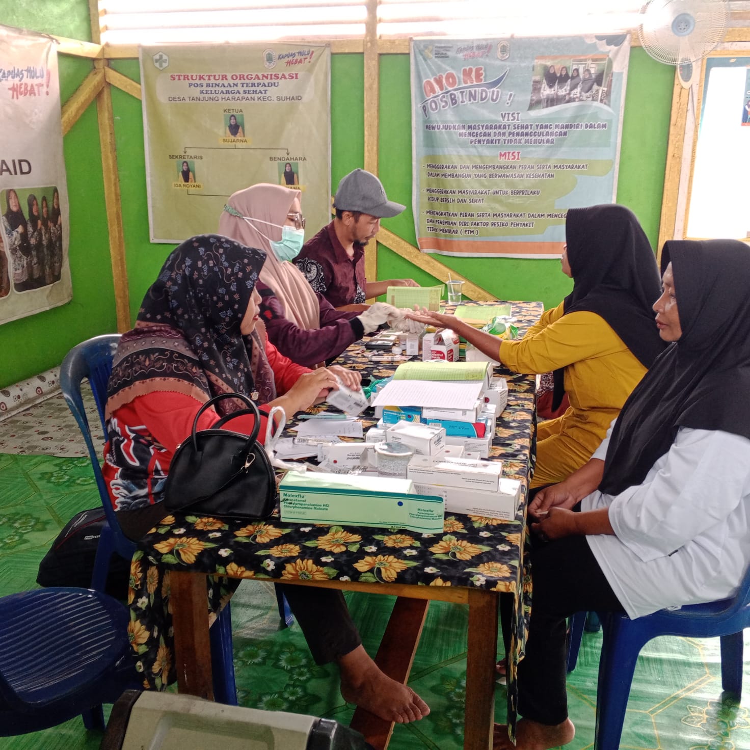 Kegiatan ini dilaksanakan oleh tenaga kesehatan Puskesmas Suhaid, yaitu Juliana A.Md.Keb., Lastoni A.Md.Kep., Nina W. A.Md.Kep., Cica Armanti A.Md.Kep., Medya Rumiati A.Md.Keb., dan Dewi S.Kep., Ners., dengan dukungan penuh dari kader kesehatan Desa Tanjung Harapan. Kolaborasi yang baik antara tenaga kesehatan dan kader memastikan seluruh tahapan pelayanan berjalan tertib dan efektif.