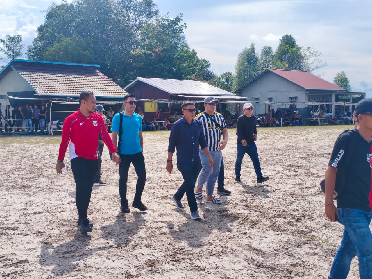 SELIMBAU - Kepala Dinas Kesehatan Pengendalian Penduduk dan Keluarga Berencana (Dinkes PP dan KB) Kabupaten Kapuas Hulu, H. Sudarso, S.Pd., M.M., mendampingi kunjungan kerja Bupati Kapuas Hulu, Fransiskus Diaan, dalam rangka menghadiri sekaligus menutup Turnamen sepak bola Anang Resang