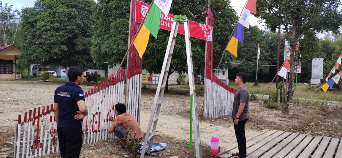 Dinkes.kapuashulukab.go.id - Dalam rangka membangun kebersamaan sambut HUT ke 75 Proklamasi Kemerdekaan RI tahun 2020, Puskesmas Embaloh Hulu membangun gapura masuk kantor Puskesmas setempat, Kamis (13/8/2020).