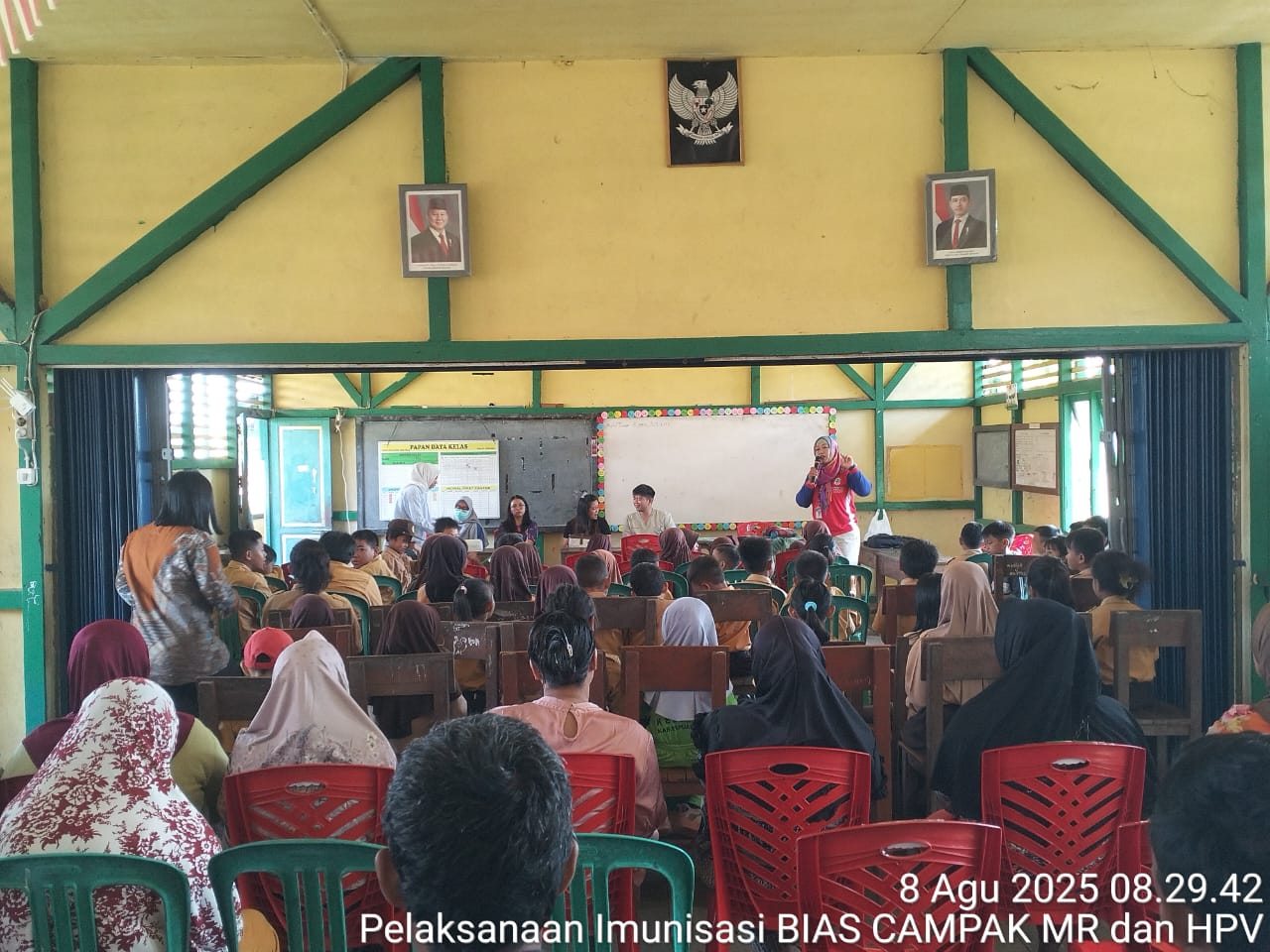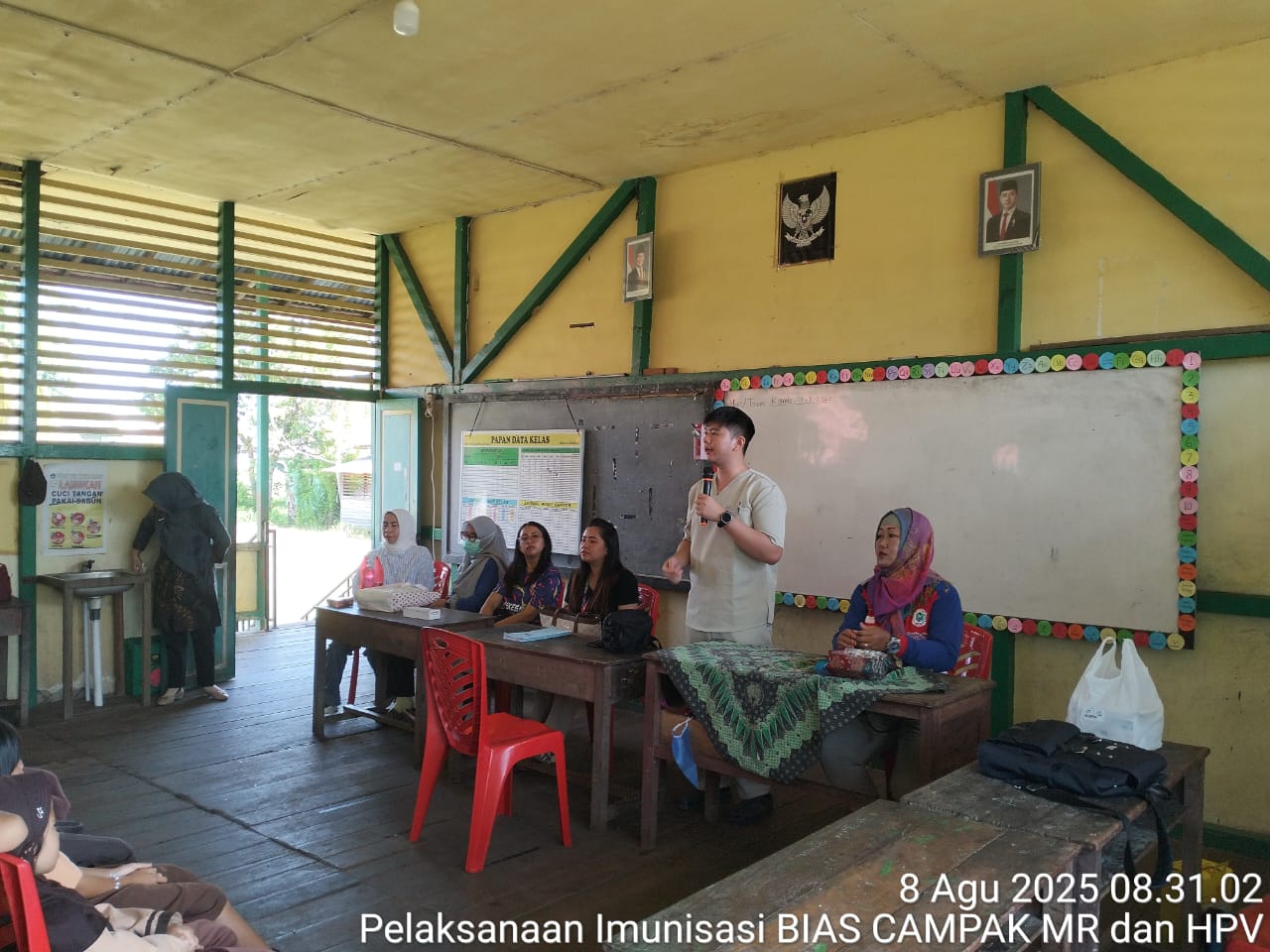 PUTUSSIBAU SELATAN – Tenaga kesehatan Puskesmas Putussibau Selatan melaksanakan penyuluhan dan pelaksanaan imunisasi BIAS Campak MR dan HPV di SDN 23 Putussibau Selatan, Kabupaten Kapuas Hulu pada Jumat (8/8/2025).