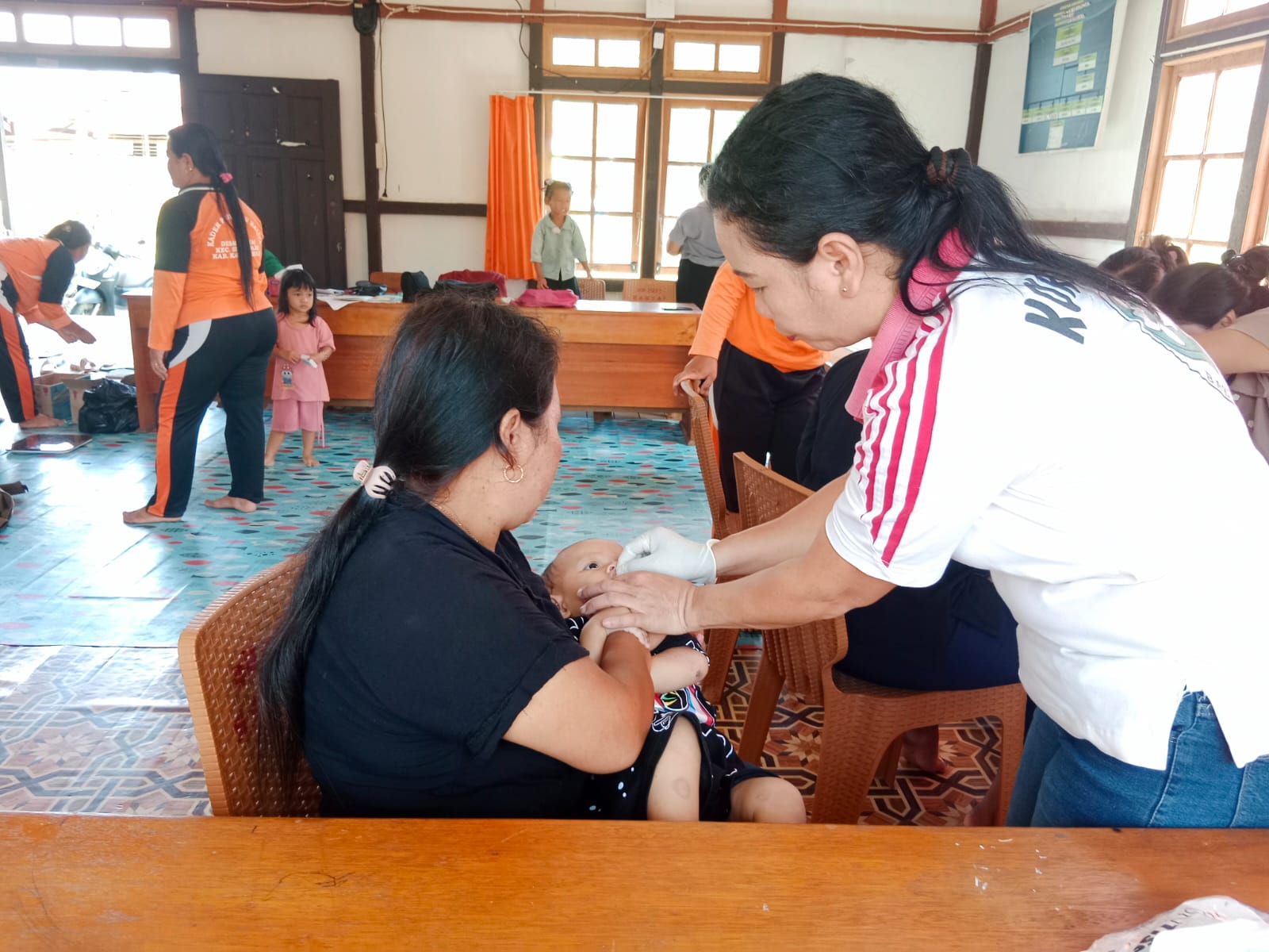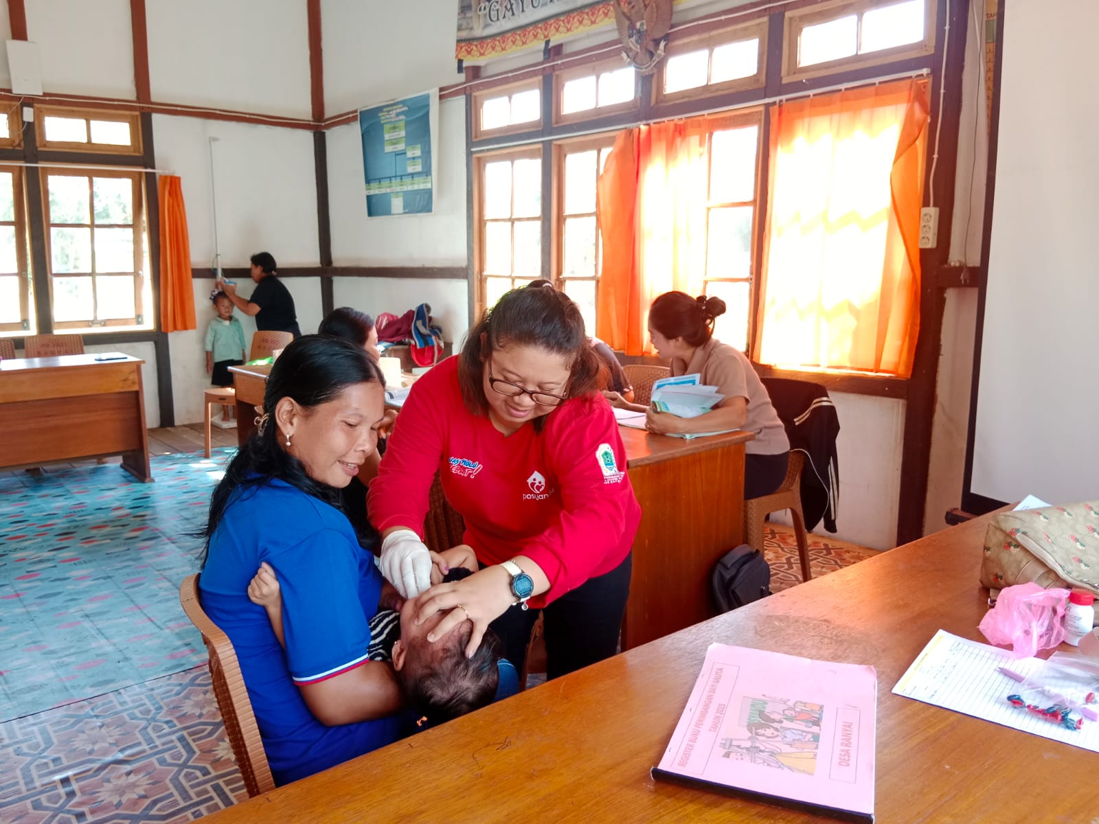 PUSKESMAS BADAU - Tnaga kesehatan Puskesmas Badau melaksanakan Pemberian Vitamin A pada anak di Gedung Adat Desa Seriang Desa Seriang Kecamatan Badau Kabupaten Kapuas Hulu pada Selasa (19/8/2025)