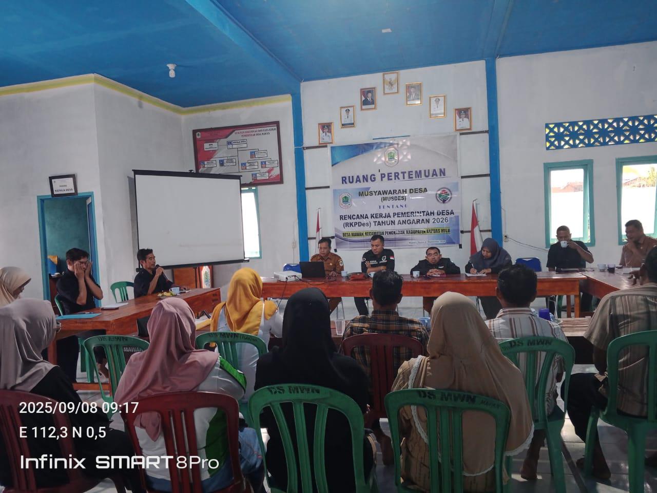PUSKESMAS PENGKADAN – Tenaga kesehatan Puskesmas Pengkadan turut hadir dalam kegiatan Musyawarah Desa (Musdes) yang dilaksanakan di Kantor Desa Mawan, Kecamatan Pengkadan, Kabupaten Kapuas Hulu pada Senin (8/9/2025).