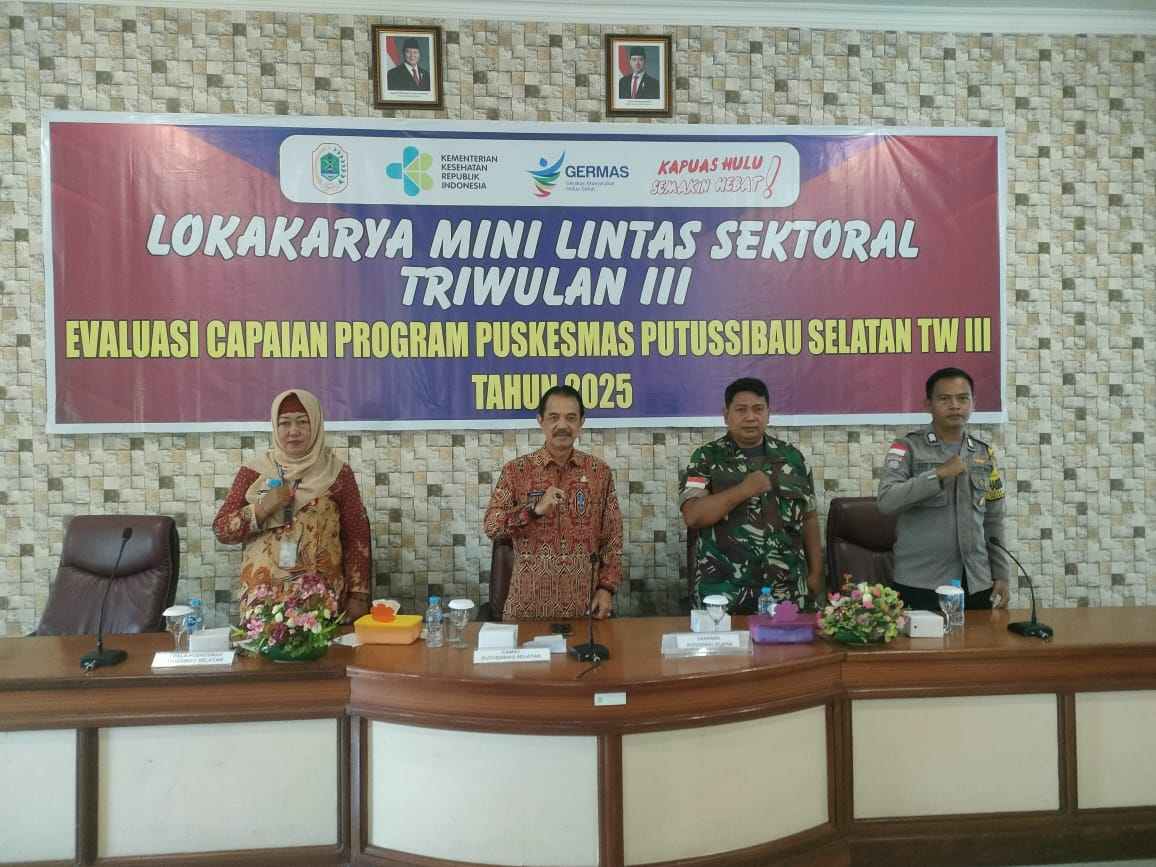 PUTUSSIBAU SELATAN – Pelaksanaan Lokakarya Mini (Lokmin) Lintas Sektor Triwulan III oleh Puskesmas di Kabupaten Kapuas Hulu masih terus berlanjut. Pada Kamis (25/9/2025), Puskesmas Putussibau Selatan yang menggelar Lokmin Lintas Sektor di Aula Kecamatan Putussibau Selatan.