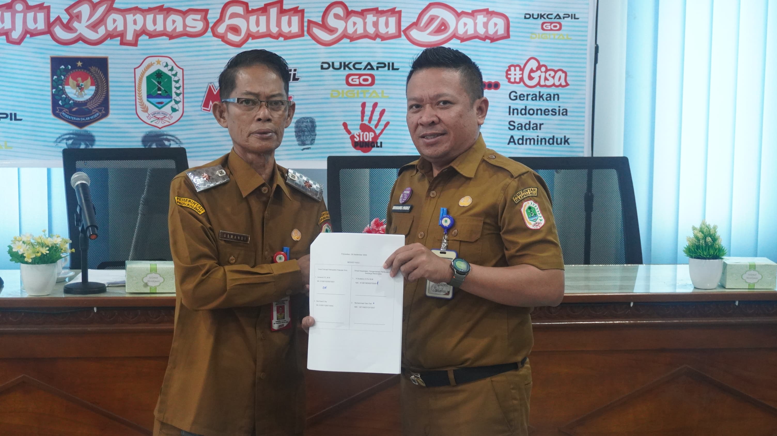 PUTUSSIBAU – Sekretaris Dinas Kesehatan Pengendalian Penduduk dan Keluarga Berencana (Dinkes PP dan KB) Kabupaten Kapuas Hulu, Nanang Padli, S.K.M., S.E., M.A.P, mengikuti kegiatan Penandatanganan Perjanjian Kerjasama (PKS) Pemberian Hak Akses Pemanfaatan Data Kependudukan di Kantor Dinas Kependudukan dan Pencatatan Sipil (Disdukcapil) pada Senin, 29 September 2025. Hadir Staf Dinkes PP dan KB Kabupaten Kapuas Hulu.