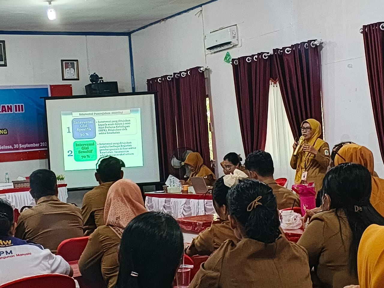 Hadir Kepala Puskesmas Putussibau Utara beserta jajaran staf, Lurah, Kepala Desa se-Kecamatan Putussibau Utara, tenaga kesehatan Pustu/Poskesdes, kader kesehatan, KUA, Kordik, serta lintas sektor lainnya di Kecamatan Putussibau Utara