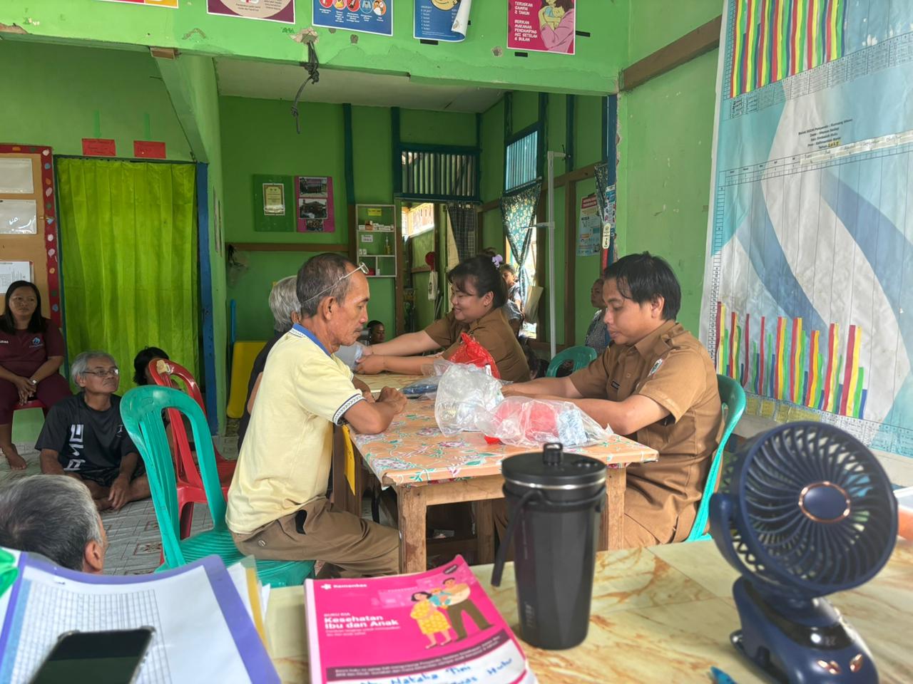 Tim pelaksana yang juga dipimpin Yordanus A., A.Md.Kep dan Pebriana Noverita, A.Md.Keb, melibatkan 11 kader posyandu serta petugas poskesdes setempat. Sebanyak 40 orang peserta hadir dan mengikuti pemeriksaan kesehatan, meliputi pengukuran tekanan darah, indeks massa tubuh, lingkar perut, serta pemeriksaan gula darah.