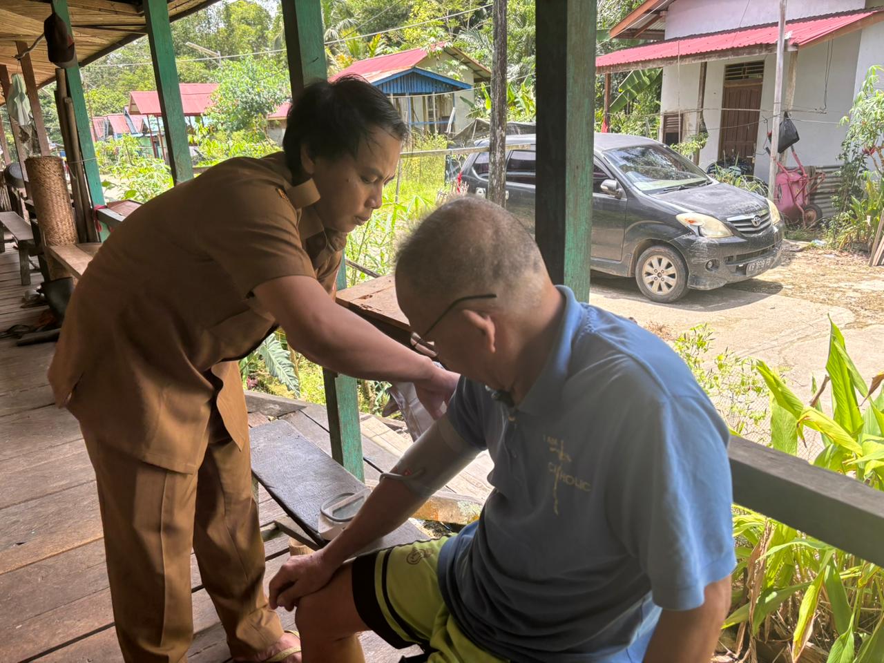 EMBALOH HULU – Dalam rangka meningkatkan derajat kesehatan masyarakat, khususnya kelompok rentan dan usia produktif, Puskesmas Embaloh Hulu melaksanakan dua kegiatan pelayanan kesehatan di Desa Manua Sadap, yakni Pelayanan Homecare Lansia dan Pelayanan Posbindu Penyakit Tidak Menular (PTM). Kegiatan ini merupakan bentuk nyata komitmen Puskesmas dalam mendekatkan pelayanan kesehatan kepada masyarakat di wilayah kerja terpencil.