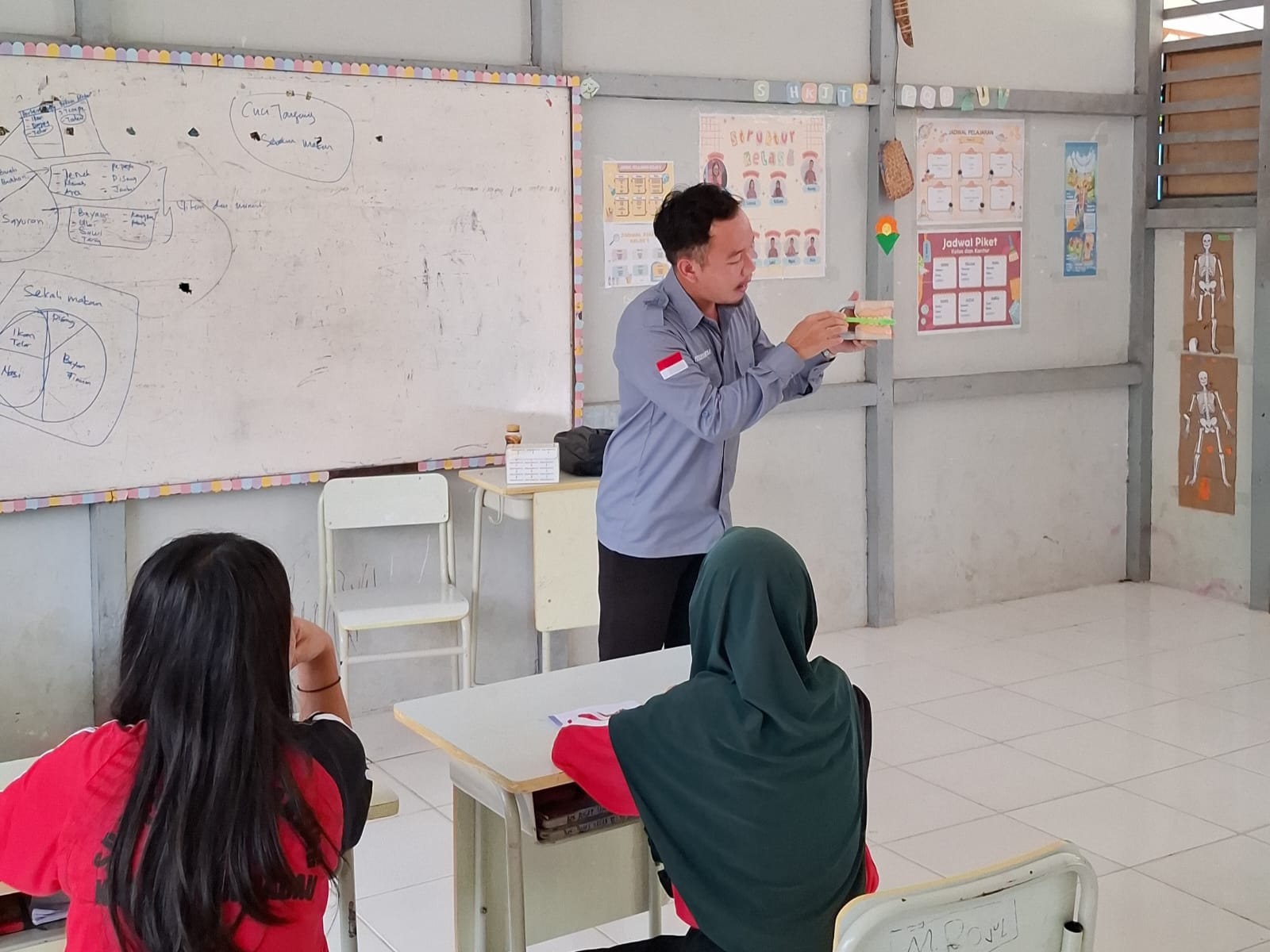 Setelah kegiatan skrining, dilanjutkan dengan Penyuluhan Kesehatan Gigi yang dipandu oleh Leonardus Eko L. Suling, S.K.M., dan Petresius Pika, A.Md.Kes., dari Puskesmas Badau. Penyuluhan ini diikuti oleh 32 siswa dan membahas pentingnya menjaga kebersihan gigi serta teknik menyikat gigi yang benar untuk mencegah kerusakan gigi dan penyakit mulut.