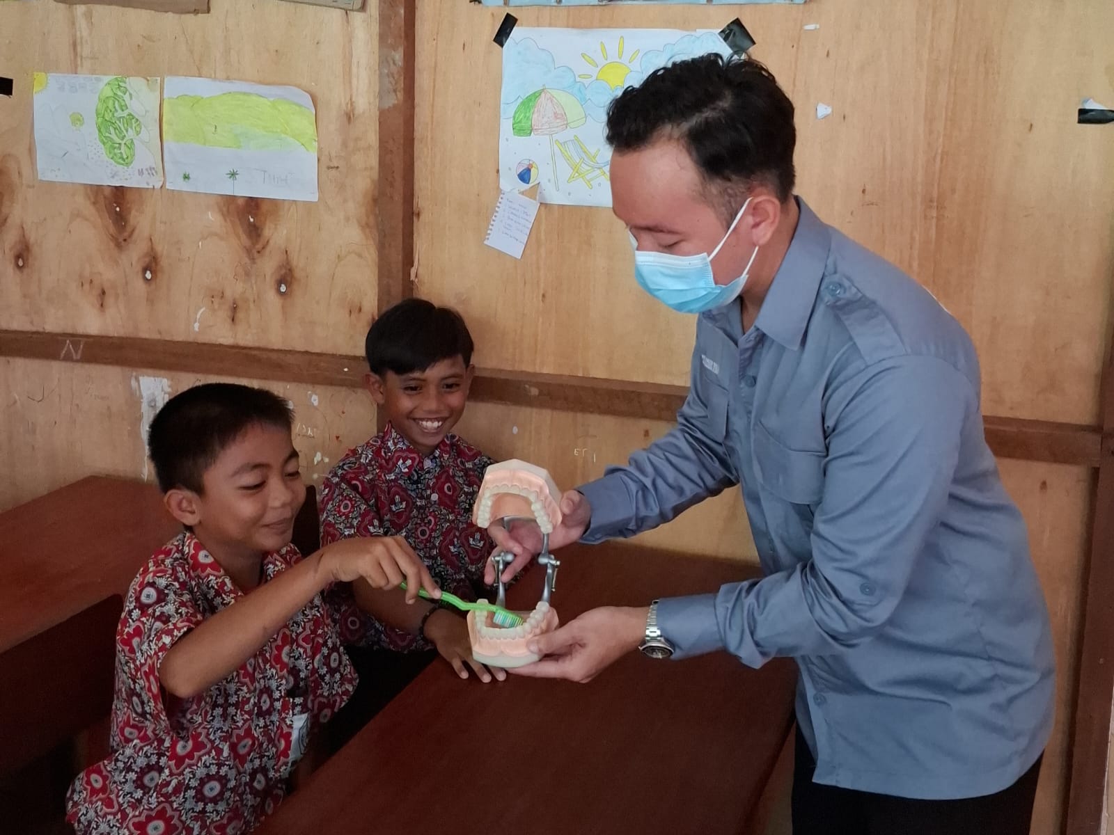 Bagian menarik dari kegiatan ini adalah sesi edukasi tentang cara menyikat gigi yang baik dan benar. Melalui praktik langsung, petugas memperagakan langkah-langkah menyikat gigi yang efektif untuk mencegah kerusakan gigi dan menjaga kesehatan mulut. Para dokter kecil terlihat antusias mengikuti kegiatan dan aktif bertanya selama sesi berlangsung.