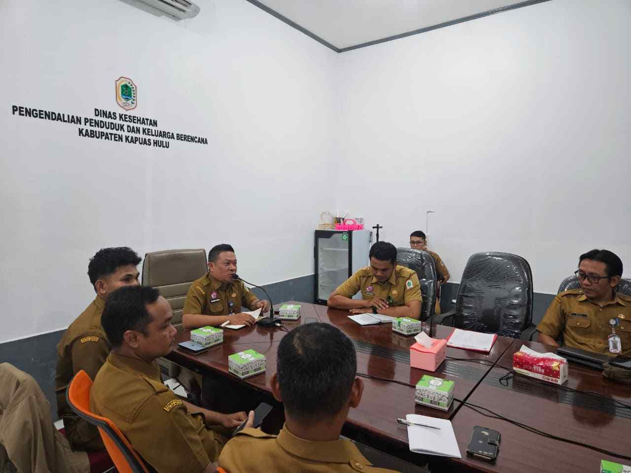 Kegiatan sosialisasi tersebut dipimpin oleh Sekretaris Dinas Kesehatan PP dan KB Kabupaten Kapuas Hulu, Nanang Padli, S.K.M., S.E., M.Si. Ia didampingi oleh Kepala Subbagian Program, Arfhi Ajudia, S.IP., M.A.P, beserta jajaran staf terkait.